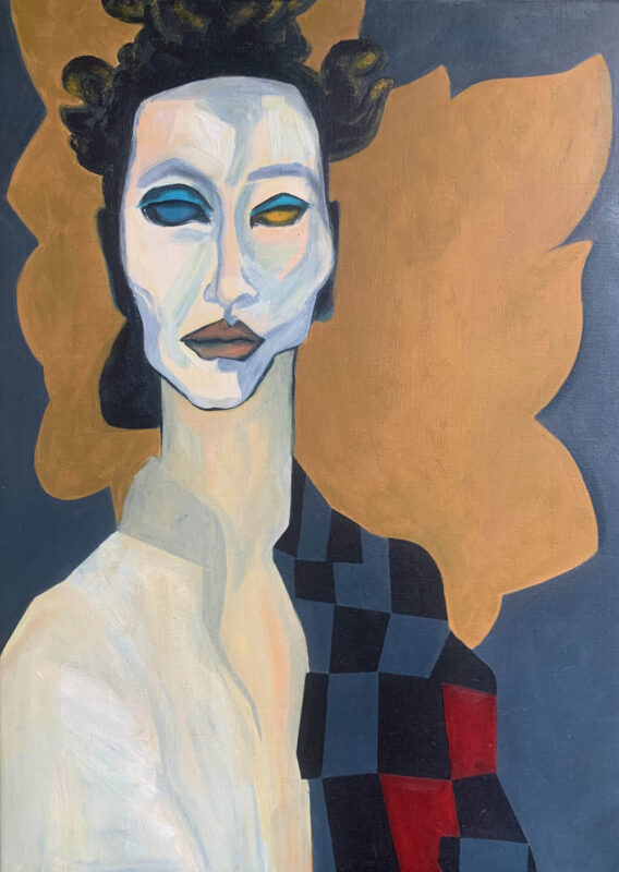 Mask2021 • Price on demand 90 x 80, oil on canvasMy dedicated soultrapped in chaossounds like silence-JJW-